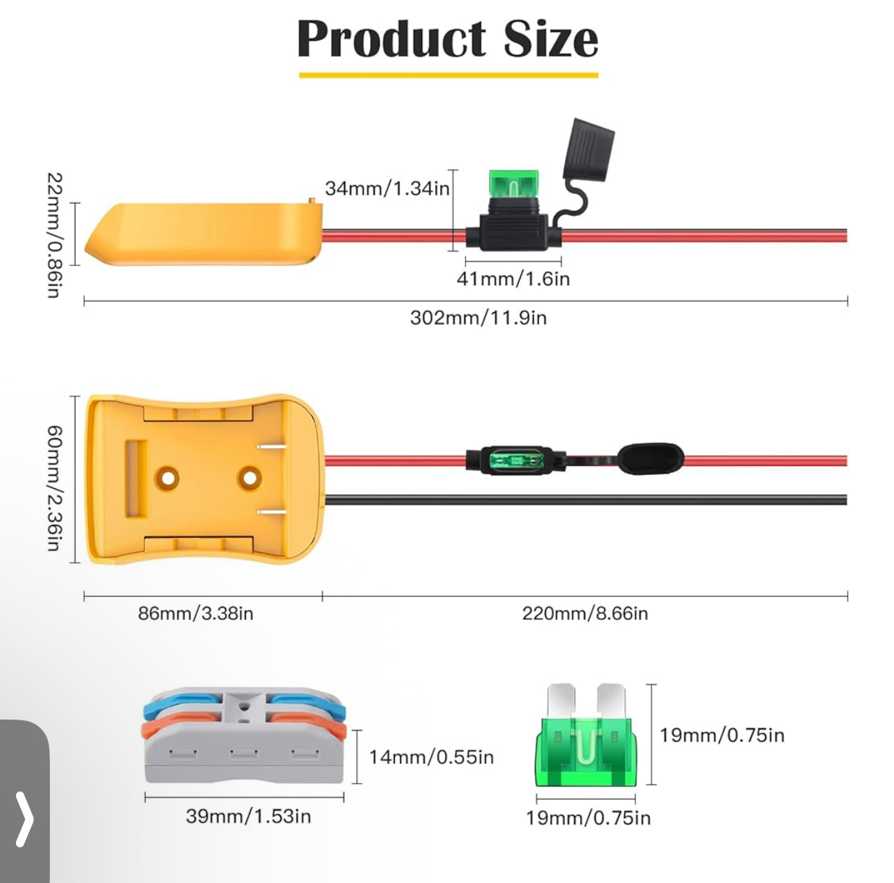 Dewalt 20V Battery Adapter Power Wheel Battery Converter Kit with Fuses & Wire Terminals